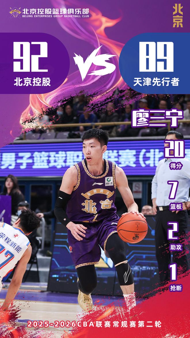 12月16日,北控男篮继续坐镇主场,迎来赛季第二个对手天津先行者。本场比赛面对以投射见长的对手,北控男篮遇到了不小的阻力,最终92:89惊险赢下比赛。